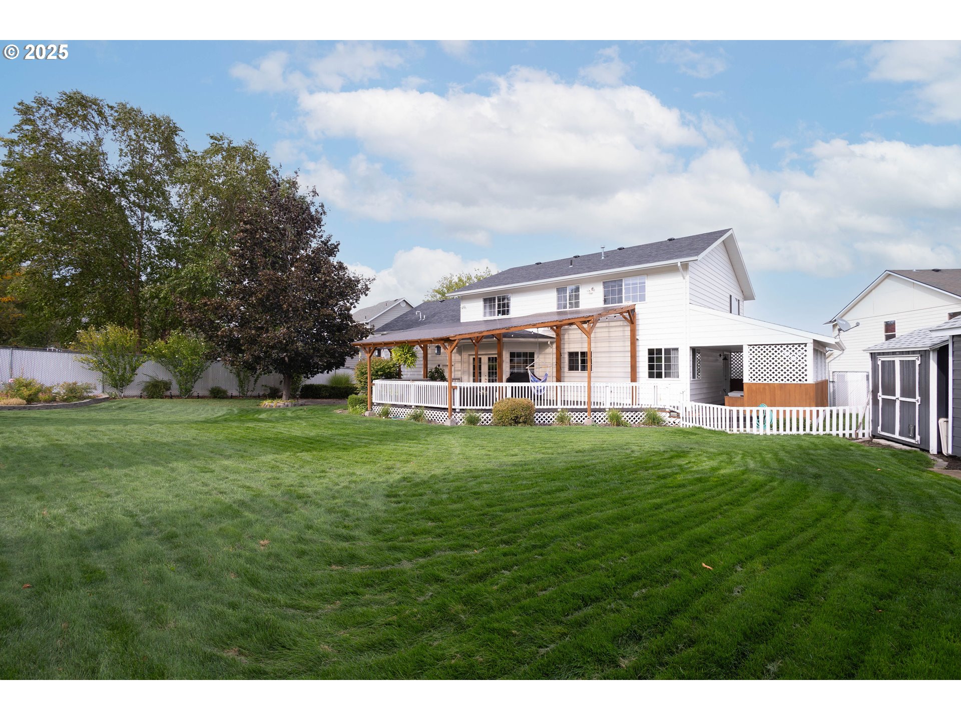 (503) 336-1515I'll be home for Christmas! The work is done and ready for you to enjoy this very special home with all of the amenities. Set on a 12000-sf lot in a friendly cul de sac with easy access to a quiet city park. The home has 2 owner suites, one ensuite bedroom on the main with a walkin closet and a full bathroom. This bedroom exits to the private hot tub area. The second primary is up and is a full ensuite along with your own laundry, closet and storage area. The upper level includes a large family room that accesses the upper additional 3 good-sized bedrooms and an extra full bathroom. Elegance and thoughtfulness for a quality-of-life retreat. The open living and dining area exits to a very well cared for back yard featuring covered patios, nicely landscaped with sprinkler system and 2 storage buildings. The kitchen has full stainless appliances including a cook island that also has a breakfast bar. An additional coffee and snack bar for convenient treats. The newer composition roof and HVAC a plus. The attached double car garage has a laundry area for the main level as well. Call now to make this your home!