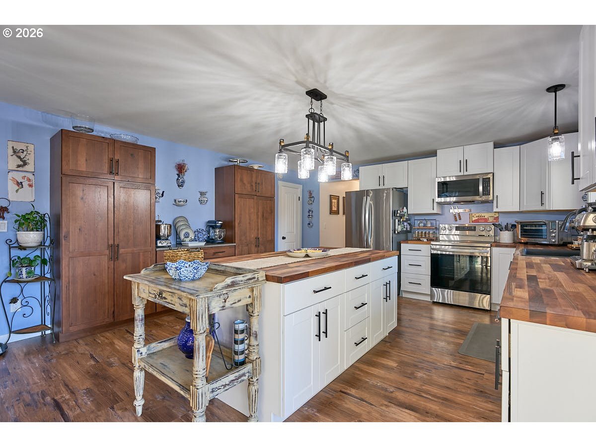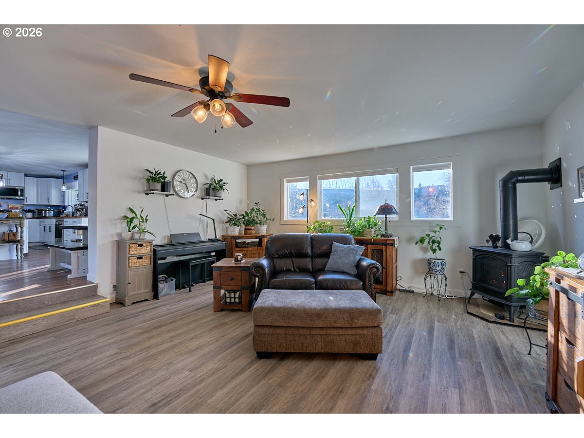 (503) 336-1515Experience a private oasis on a .73 acre lot with Prairie Creek frontage. This light and bright 2,156sqft home offers 4 bedrooms and 3 full bathrooms. The home was taken down to the studs and remodeled approximately four years ago, including new plumbing, electrical, HVAC, propane woodstove, insulation, sheetrock, floor coverings and quality fixtures and cabinetry throughout. The kitchen features an island, butcher block countertops, a wall of added cabinetry, pantry and stainless steel appliances. Ample storage throughout including a mudroom and dedicated laundry room. Outdoors, enjoy a true gardening paradise with mature landscaping, berry patch, fruit trees, two hoop houses, tool shed, fire pit, deck and a creekside patio. The detached 863sqft shop includes an insulated room, 220 and offers excellent workspace and storage. Plenty of parking with room for your RV and toys. Fully fenced and secure, the property also boasts spectacular mountain views. The Orenco Advantex septic system was installed approximately three years ago and was just serviced.