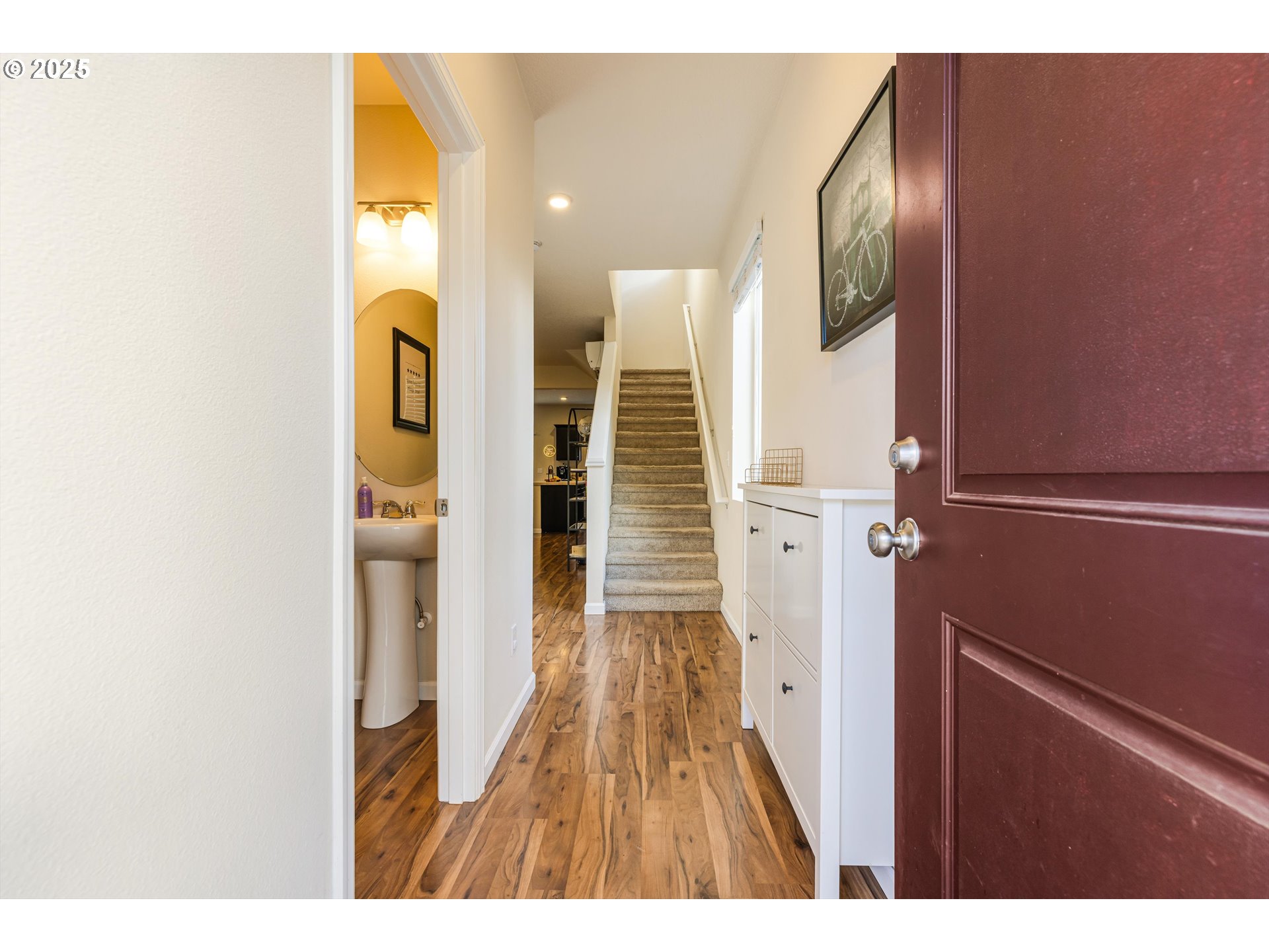 (503) 336-1515Tucked onto a quiet corner lot for extra privacy and easy access to nearby walkways and amenities, this beautifully maintained 3-bedroom, 2.1-bath end-unit townhome offers the space and comfort you have been looking for. Built in 2015 and spanning 1,564 square feet across two well-designed levels, the home lives large with an open-concept great room that flows effortlessly into the kitchen and dining area, creating an inviting setting for everyday life and entertaining. The kitchen is both stylish and functional, featuring stainless steel appliances, a generous island with eat bar seating, tile finishes, and a pantry for extra storage. Sliding doors from the dining space open to a private patio, perfect for morning coffee, grilling, or simply enjoying a quiet moment outdoors. A convenient main-level powder bath adds ease for guests and daily living. Upstairs, the primary suite provides a peaceful retreat with a walk-in closet and a well-appointed ensuite bath. Two additional bedrooms, a versatile loft space, and a full laundry area complete the upper level, offering flexible room for guests, a home office, or hobbies. Comfort is enhanced year-round with an efficient heat pump system, double-pane vinyl windows, and a tankless gas water heater. A fenced yard, sprinklers, and an attached one-car garage round out the package, along with off-street parking for added convenience. With low monthly HOA dues and an end-unit location that brings in extra natural light and breathing room, this home blends low-maintenance living with the warmth and feel of a true residence.