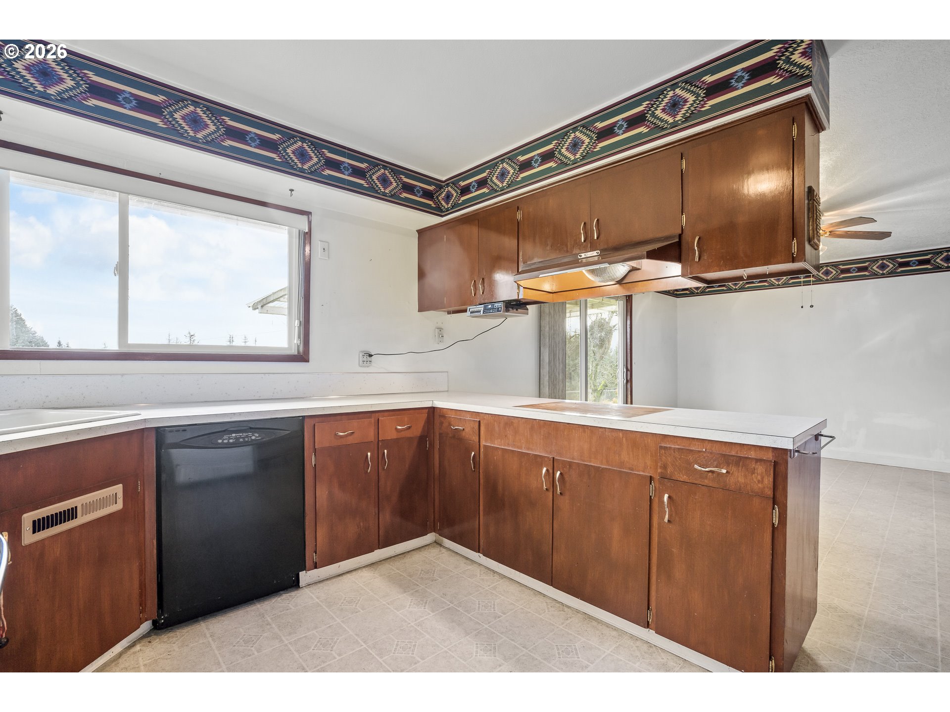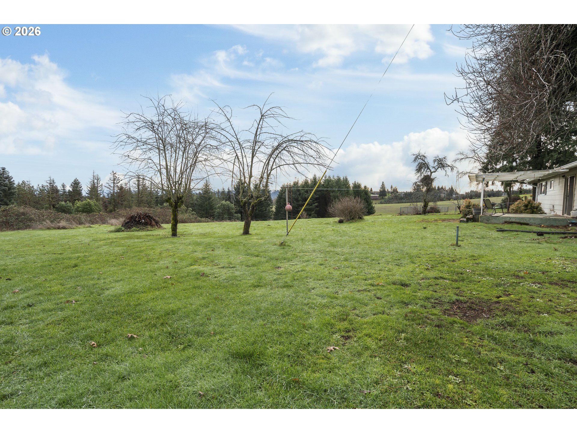 (503) 336-1515One-level country living on prime mountain-view acreage just minutes from town with four-car garage parking and a shop/barn with stalls. Inside: Welcoming living room with brick hearth and pellet stove opens to a kitchen/dining combo space with a covered back patio, perfect for outdoor entertaining with a scenic backdrop. The kitchen is peninsula-style with stainless oven/range and black dishwasher. Still plumbed for drop-in range, if preferred. Forced-air heat and double-pane vinyl windows assure your comfort in any season. Attached garage space combined comprises 1,056 square feet. Convert one garage to add 500 sf additional living space for a rainy day play room, home gym or family room-- so much potential -- or retain it to park all your toys and extra vehicles. Bedroom floors are walnut. The house is well away from the road and backs to a former Christmas Tree farm, making it both private and peaceful, and the terrain is level enough for horses and livestock or extensive gardens. This is your chance to own Sherwood acreage affordably!