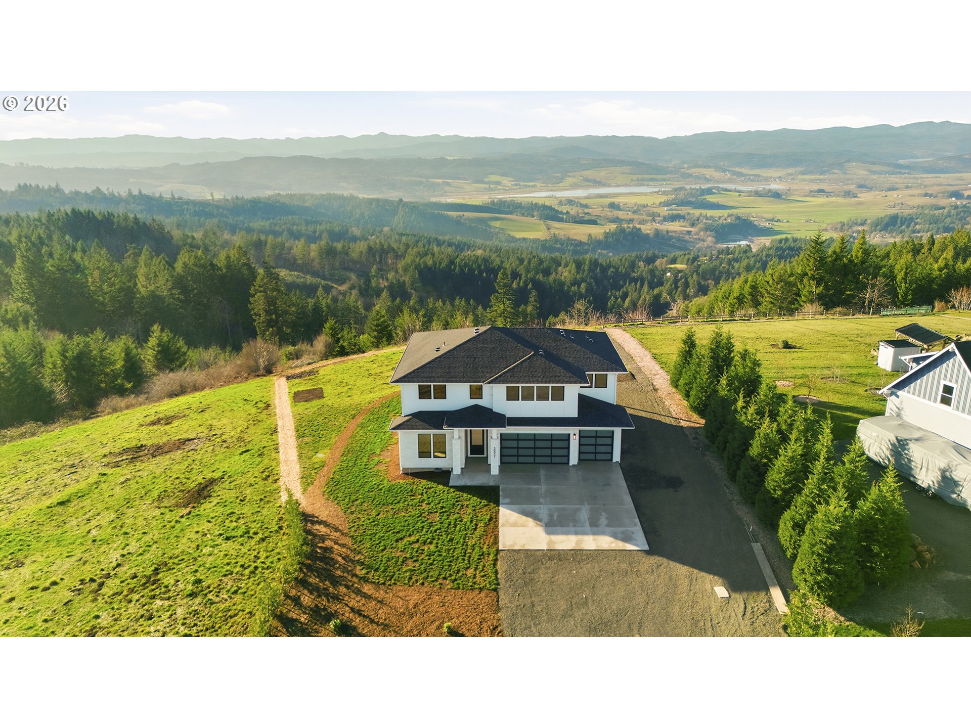 (503) 336-1515Open Sat/Sun from 12pm to 4pm. This beautiful custom home built by Renaissance Homes sits on 5 acres with AMAZING views! This absolute STUNNER was built less than a year ago! The oversized windows allow for the natural light to flood the home keeping it light and bright even on the grey winter days! This home is extremely private and sits at the end of a private road. There is a new path that allows you to walk around the property to further enjoy the views. The home boasts 10’ ceilings throughout the main, with a stacking glass sliding door that opens to your outdoor covered living complete with a cypress lid, ceiling fan as well as overhead heaters. The kitchen is designed for entertaining with polished quartz counters, an oversized island with eating bar and waterfall edges, built in beverage/wine refrigerator, induction cooktop, double ovens as well as a generous walk-in pantry. The dining room leads to a separate BBQ patio complete with another overhead heater. No detail was overlooked including the upgraded brushed oak floors and plush carpet. The home is prepped for a future generator. This energy efficient home also offers a tankless hot water heater with a recirculating loop and a 95% efficient furnace. The primary suite includes an expansive walk-in closet with built-ins, a spa-like bathroom including double vanity, a freestanding soaking tub with a territorial coastal view as well as a full tile zero threshold shower including a separate rain shower. The primary bedroom and the bonus room upstairs are both prepped for future wet bars. This home has ample storage between the 3-car garage, under the stairwell closet as well as multiple coat and linen closets throughout! This is a rare opportunity to live in a recently built custom Renaissance Home on acreage!