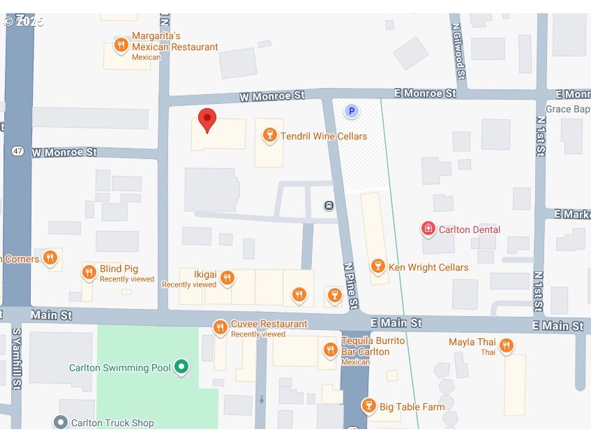 (503) 336-1515All 7525 approx square feet offer a blank canvas to create something uniquely yours. What was once light industrial/office/gallery is currently suited as wine tasting rooms and event space. What is your vision? Busy corner offers easy access and signage potential on over 1/3 acre in downtown Carlton. The building is designed to have separate suites and is currently leased by two tasting rooms, with an open suite for an event space, specialty retail, wine or food processing, catering and so much more. Shown by appointment only on Monday or Tuesday. Available to show on December 2nd. Do not disturb tenants.